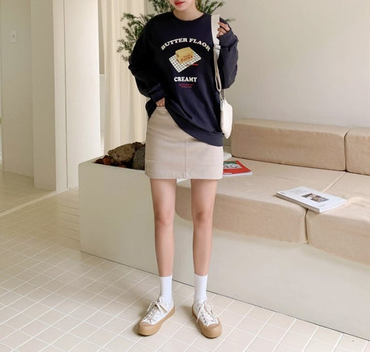 "Butter Flavor" Graphic Oversized Crew Neck Jumper (2c.)