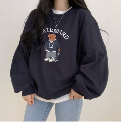 "Skateboard Bear" Graphic Oversized Crew Neck Jumper (2c.)
